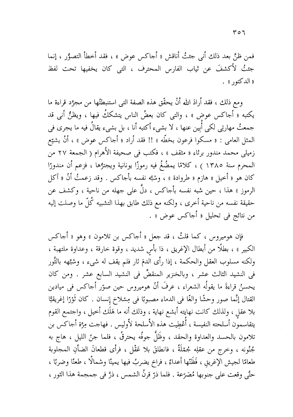 فمن ظن بعد ذلك انى جئت اناقش أجاكس عوض فقد اخطأ التصور انما جئت لاكشف عن ثياب الفارس المحترف التي كان يخفيها تحت لفظ الدكتور.