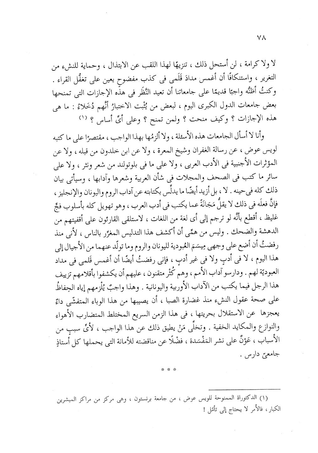 (1) الدكتوراة الممنوحة للويس عوض، من جامعة برنستون، وهي مركز من مراكز المبشرين الكبار، فالأمر لا يحتاج إلى تأمّل!