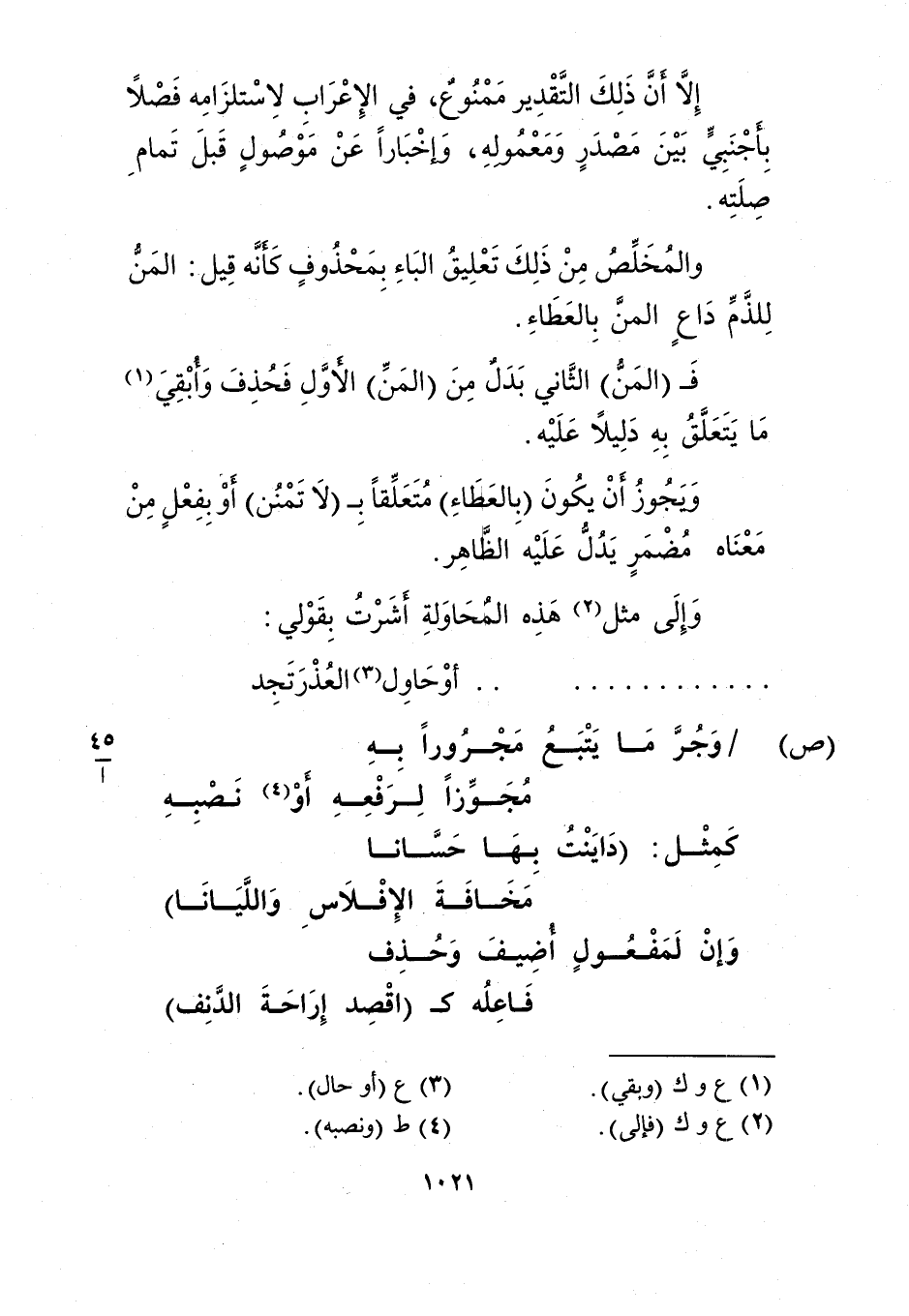 إلا أن ذلك التقدير ممنوع، في الإعراب لاستلزامه فصلا بأجنبي بين مصدر ومعمول، وإخبارا عن موصول قبل التمام صلته.