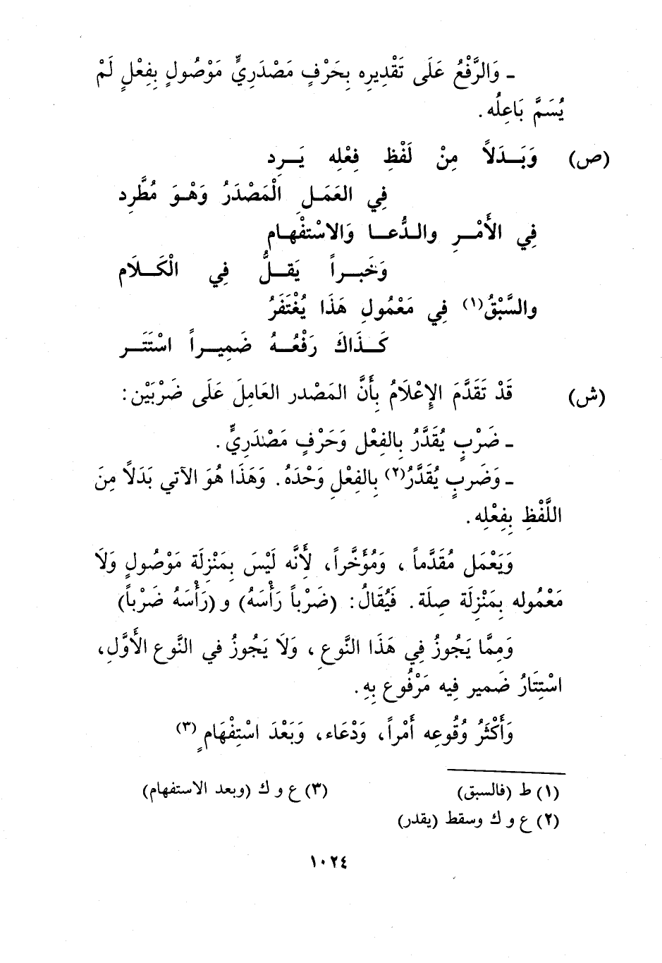 قد تقدم الإعلام بأن المصدر العامل على ضربين: