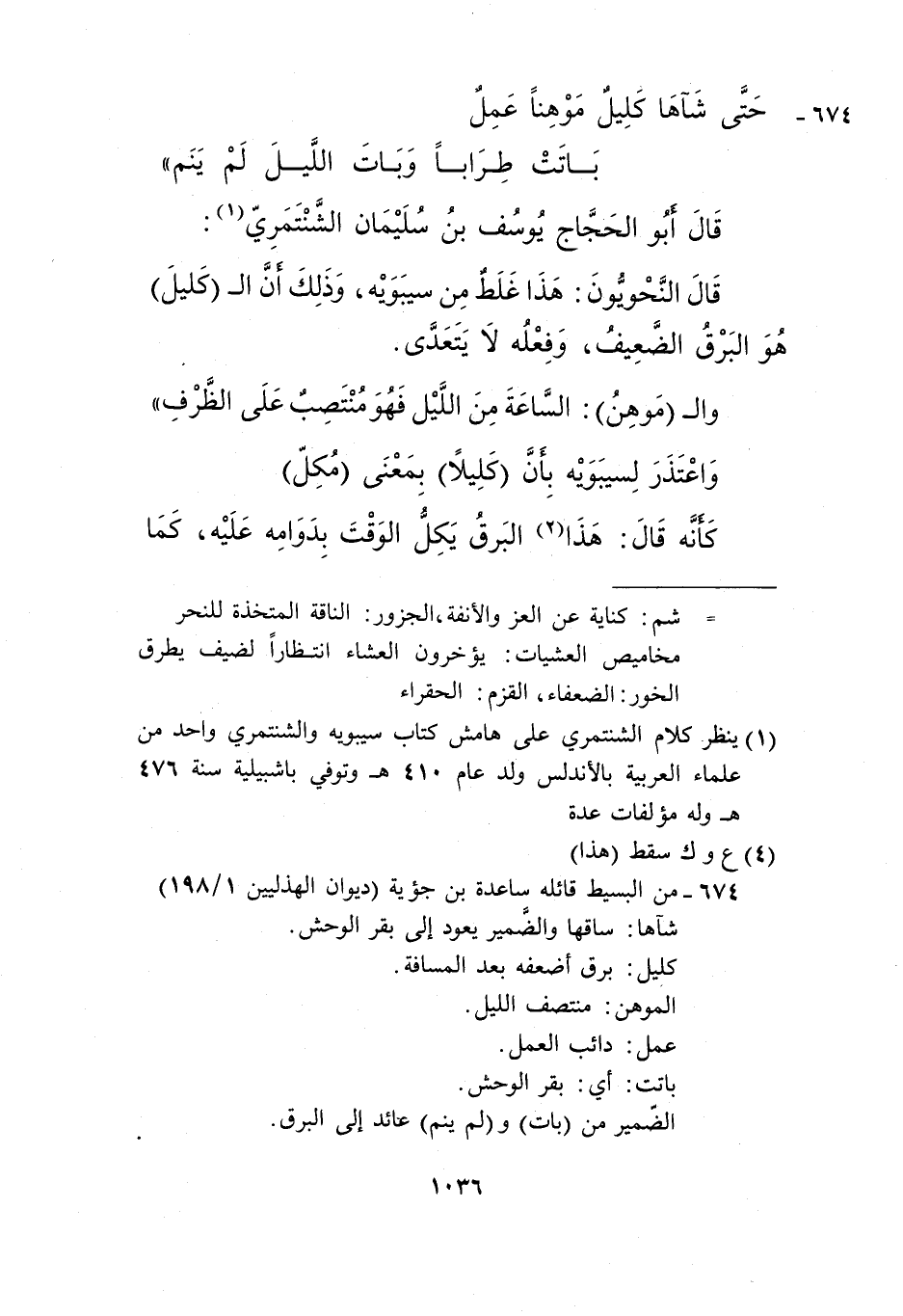 1 ينظر كلام الشنتمري على هامش كتاب سيبويه والشنتمري واحد من علماء العربية بالأندلس ولد عام 410هـ وتوفي بإشبيلية سنة 476هـ وله مؤلفات عدة.