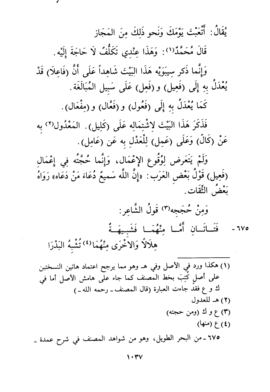 فذكر هذا البيت لاشتماله على "كليل". المعدول2 به عن "كال" وعلى "عمل" للعدل به عن "عامل".