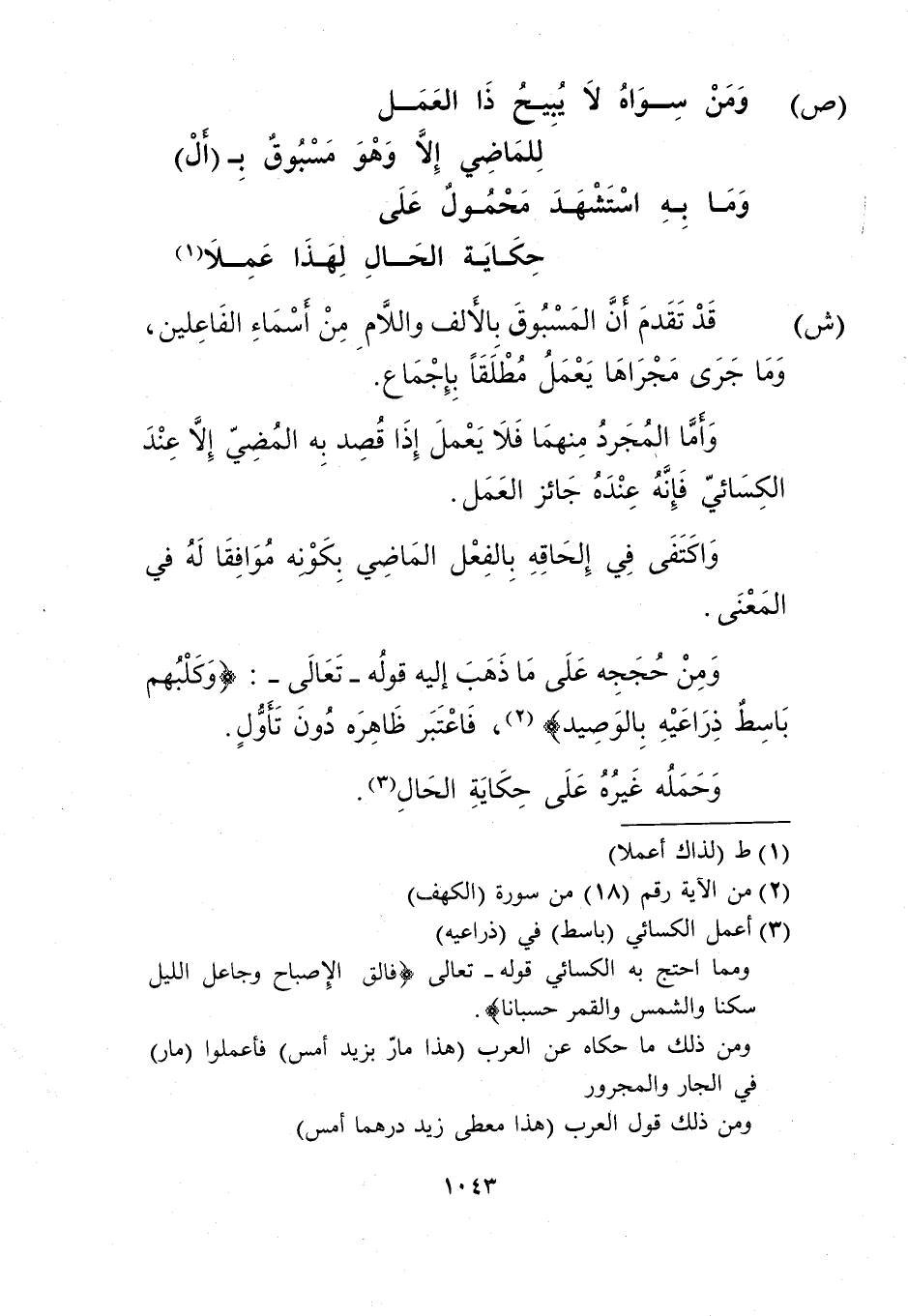 وقد أجاب ابن يعيش في شرح المفصل عن هذه الحجج 6/ 77 عند قول الزمخشري. "ويشترط في أعمال اسم الفاعل أن يكون في معنى الحال أو الاستقبال" فلينظر هناك.
