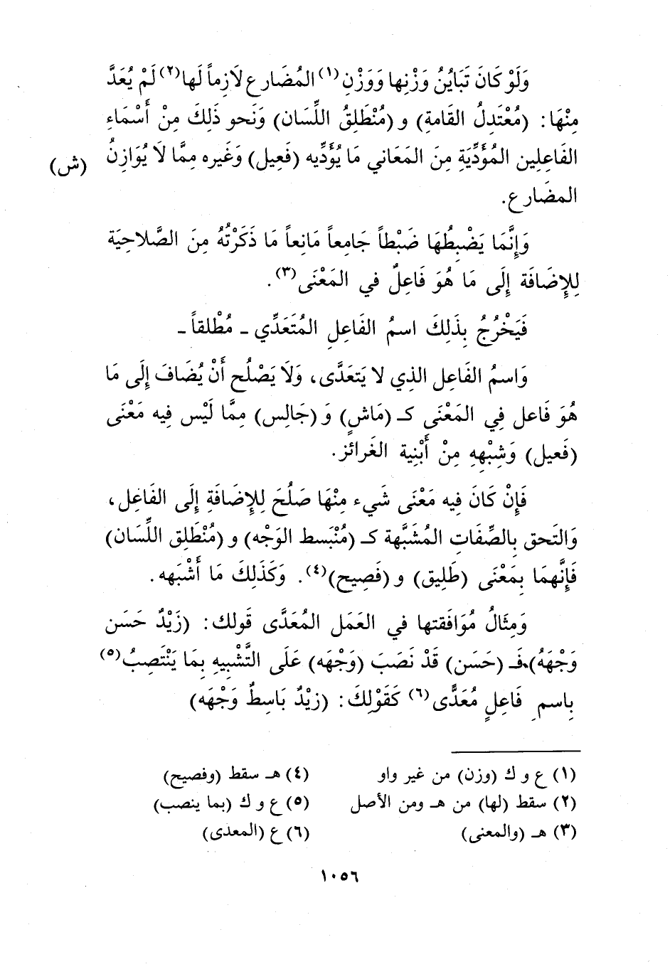 فإن كان فيه معنى شيء منها صلح للإضافة إلى الفاعل، والتحق بالصفات المشبهة كـ"منبسط الوجه" و"منطلق اللسان" فإنهما بمعنى "طليق" و"فصيح"4. وكذلك ما أشبهه.