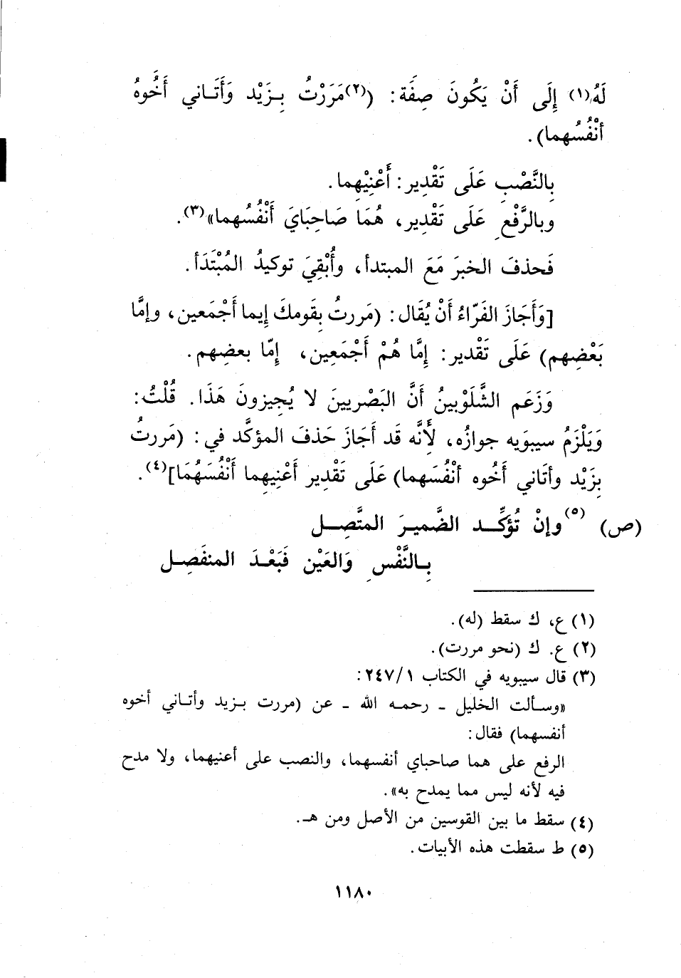 وسألت الخليل -رحمه الله- عن "مررت بزيد وأتاني أخوه أنفسهما" فقال: