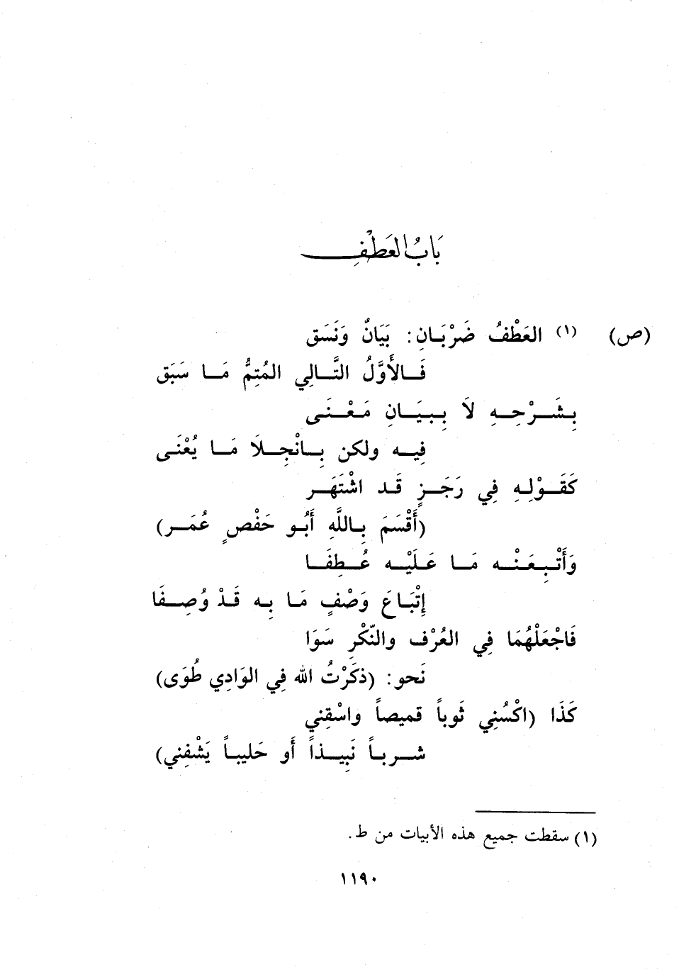 1العطف ضربان: بيان ونسق ... فالأول التالي المتم ما سبق