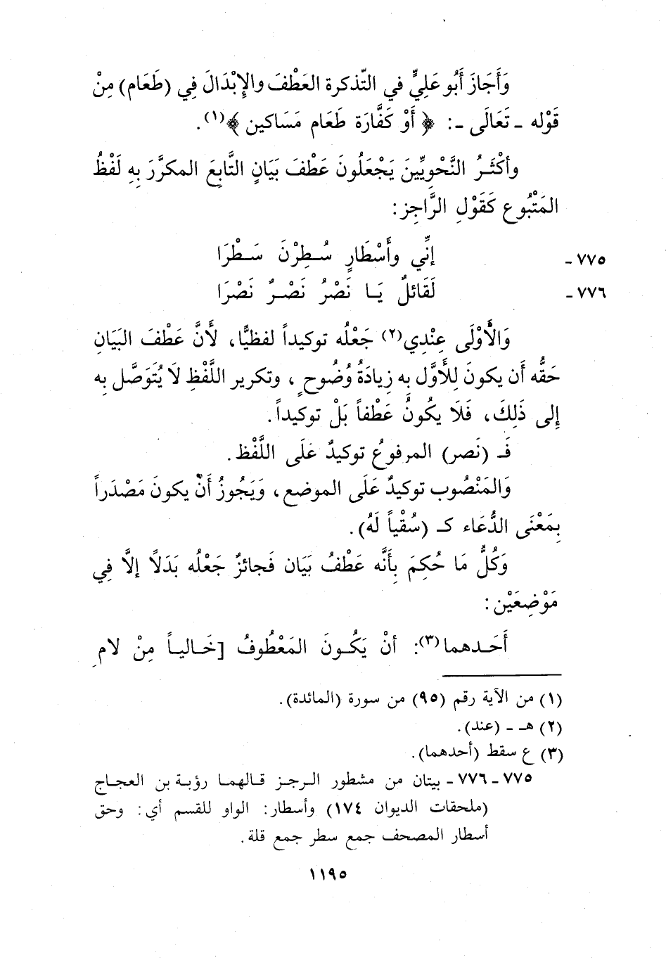 775- 776- بيتان من مشطور الرجز قالهما رؤبة بن العجاج "ملحقات الديوان 174"، وأسطار: الواو للقسم أي: وحق أسطار المصحف جمع سطر جمع قلة.