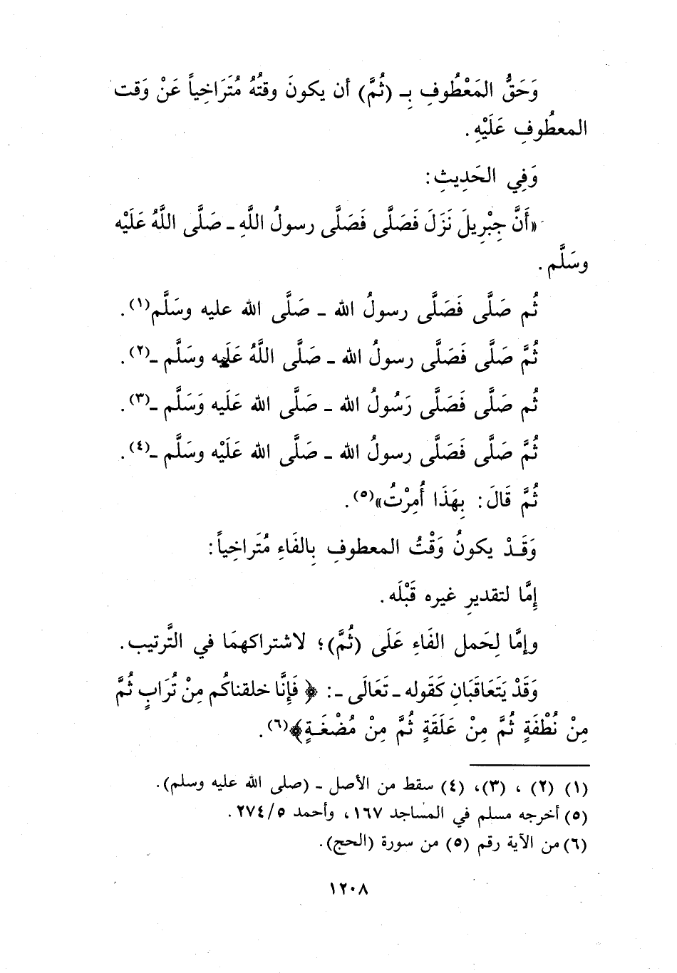 وحق المعطوف بـ"ثم" إن يكون وقته متراخيا عن وقت المعطوف عليه.