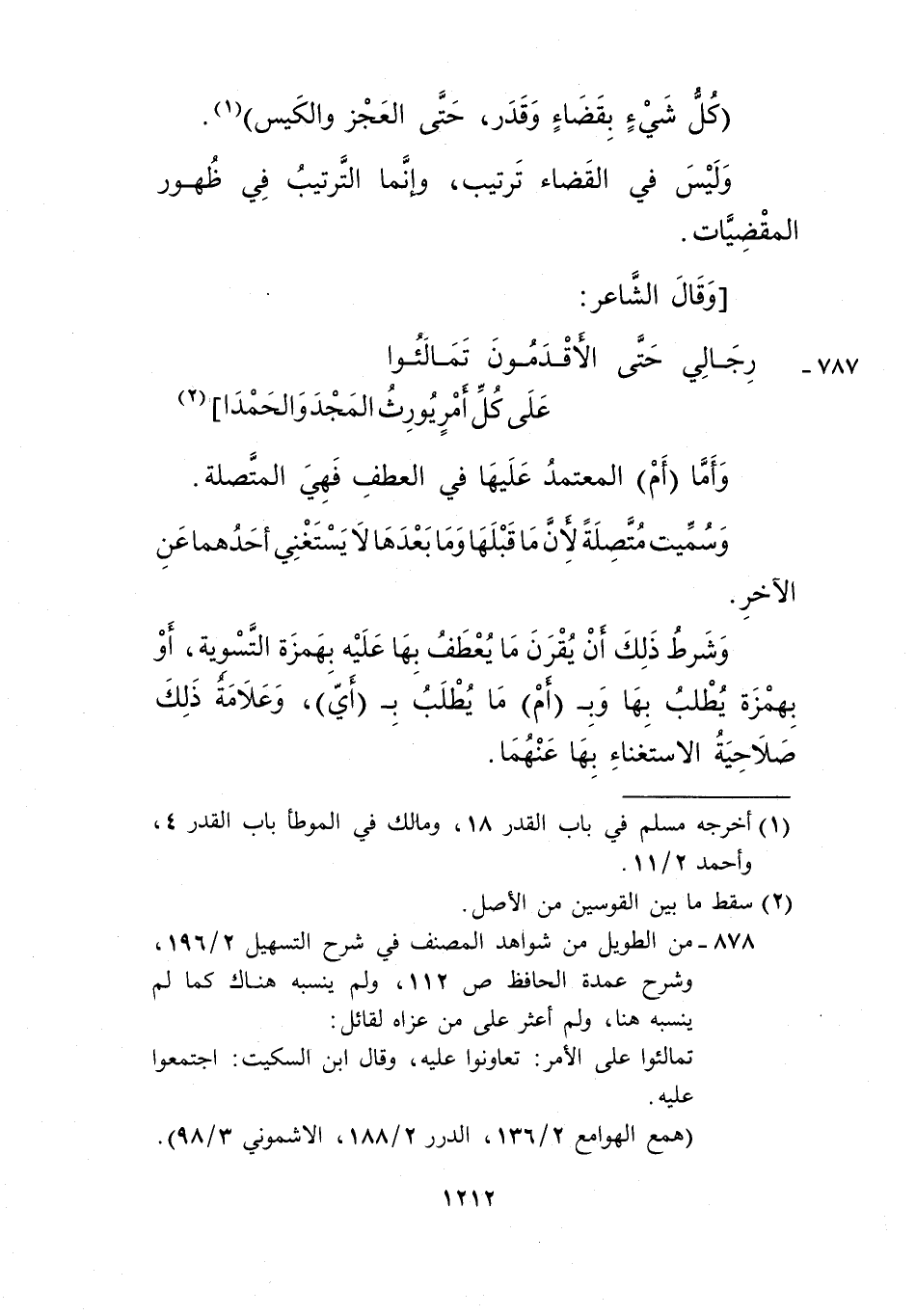 787- من الطويل من شواهد المصنف في شرح التسهيل 2/ 196، وشرح عمدة الحافظ ص112، ولم ينسبه هناك كما لم ينسبه هنا، ولن أعثر على من عزاه لقائل: