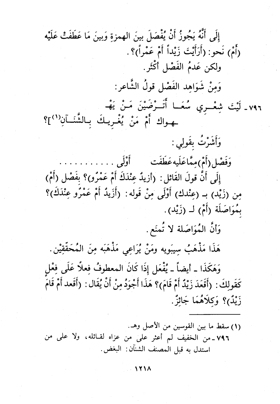 796- من الخفيف لم أعثر على من عزاه لقائله، ولا على من استدل به قبل المصنف الشآن: البغض.