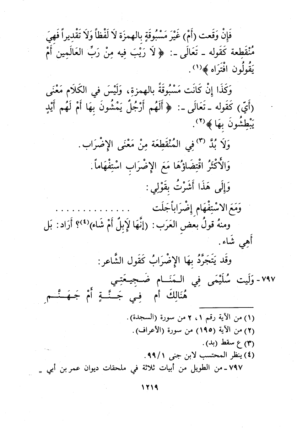 وكذا إن كانت مسبوقة بالهمزة، وليس في الكلام معنى "أي" كقوله تعالى: {أَلَهُمْ أَرْجُلٌ يَمْشُونَ بِهَا أَمْ لَهُمْ أَيْدٍ يَبْطِشُونَ بِهَا} 2.