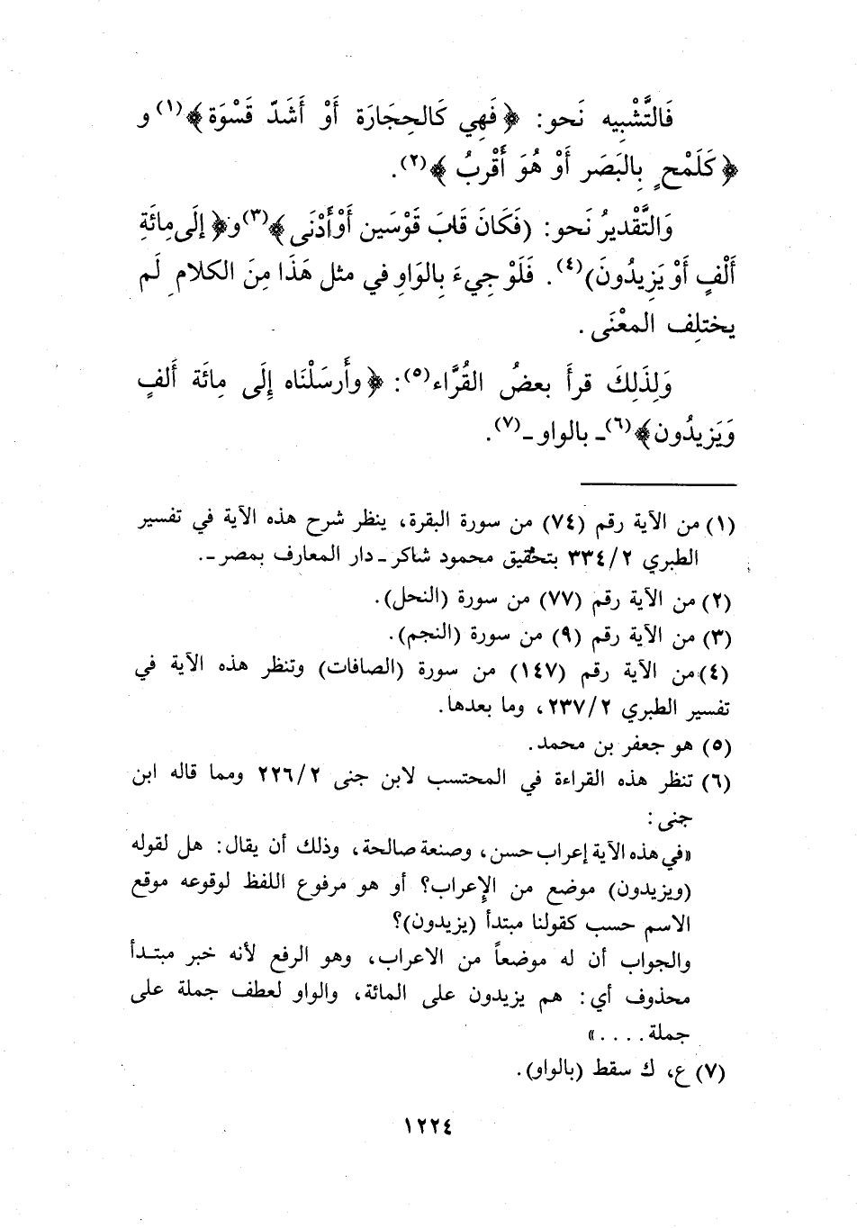 ولذلك قرأ بعض القراء5: {وَأَرْسَلْنَاهُ إِلَى مِائَةِ أَلْفٍ أَوْ يَزِيدُونَ} 6 بالواو7.