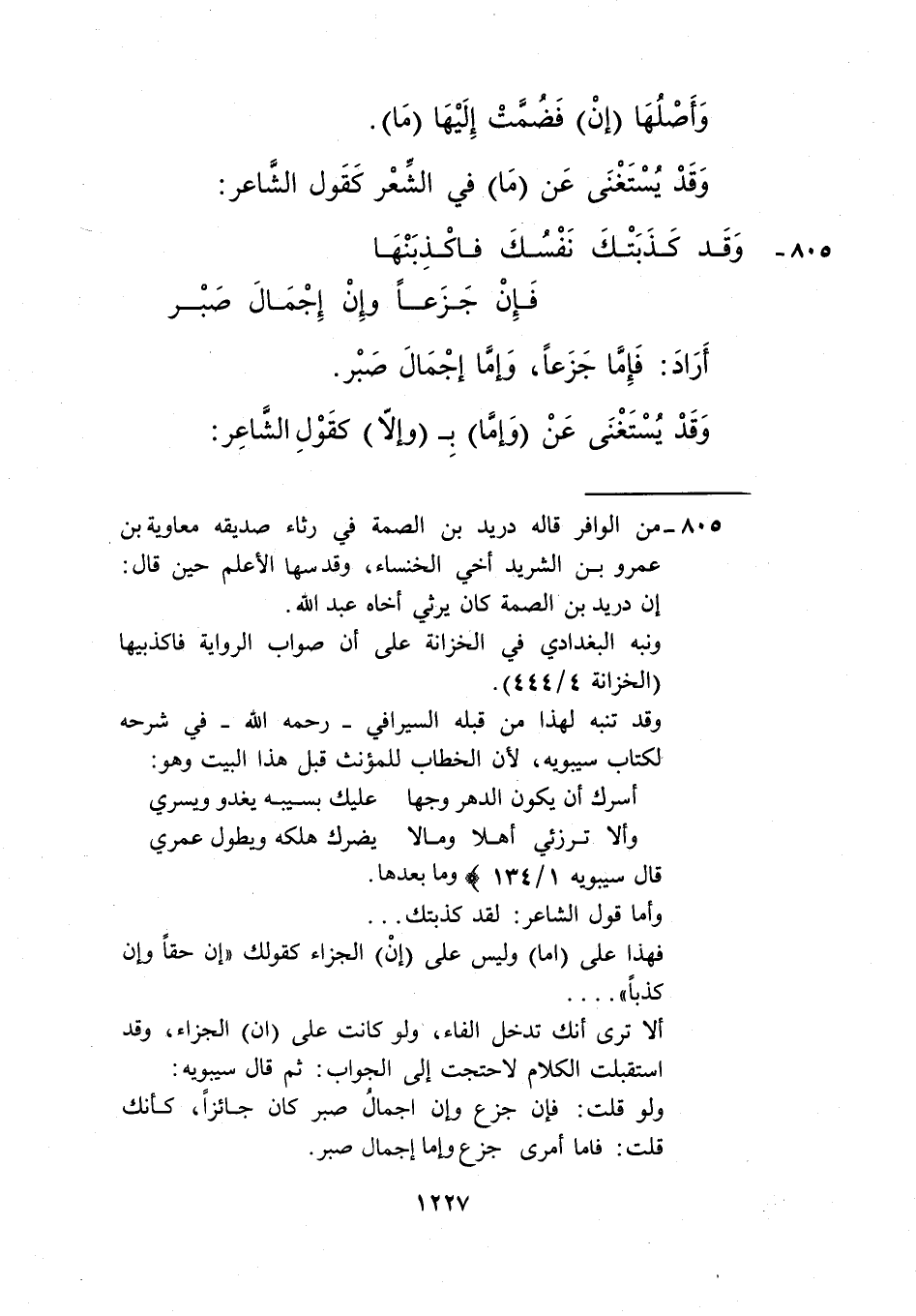 805- من الوافر قاله دريد بن الصمة في رثاء صديقه معاوية بن عمرو بن الشريد أخي الخنساء، وقد سها الأعلم حين قال: إن دريد بن الصمة كان يرثي أخاه عبد الله.