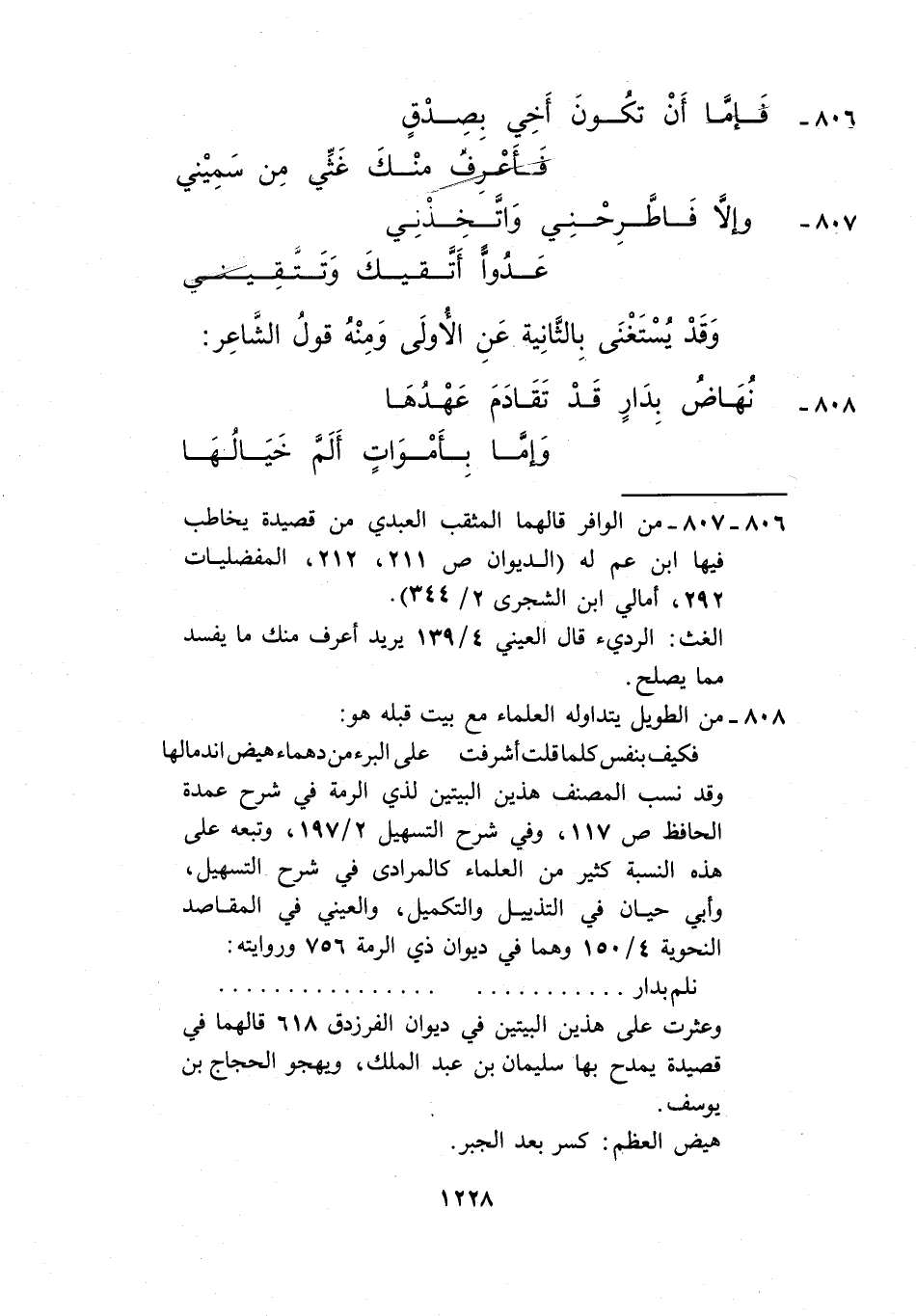 806- 807- من الوافر قالهما المثقب العبدي من قصيدة يخاطب فيها ابن عم له "الديوان ص 211، 212، المفضليات 292، أمالي ابن الشجري 2/ 344".