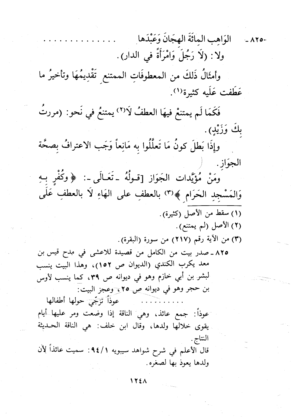 825- صدر بيت من الكامل من قصيدة الأعشى في مدح قيس بن معد يكرب الكندي "الديوان ص152"، وهذا البيت ينسب لبشر بن أبي خازم وهو في ديوانه ص39، كما ينسب لأوس بن حجر وهو في ديوانه ص25، وعجز البيت.
