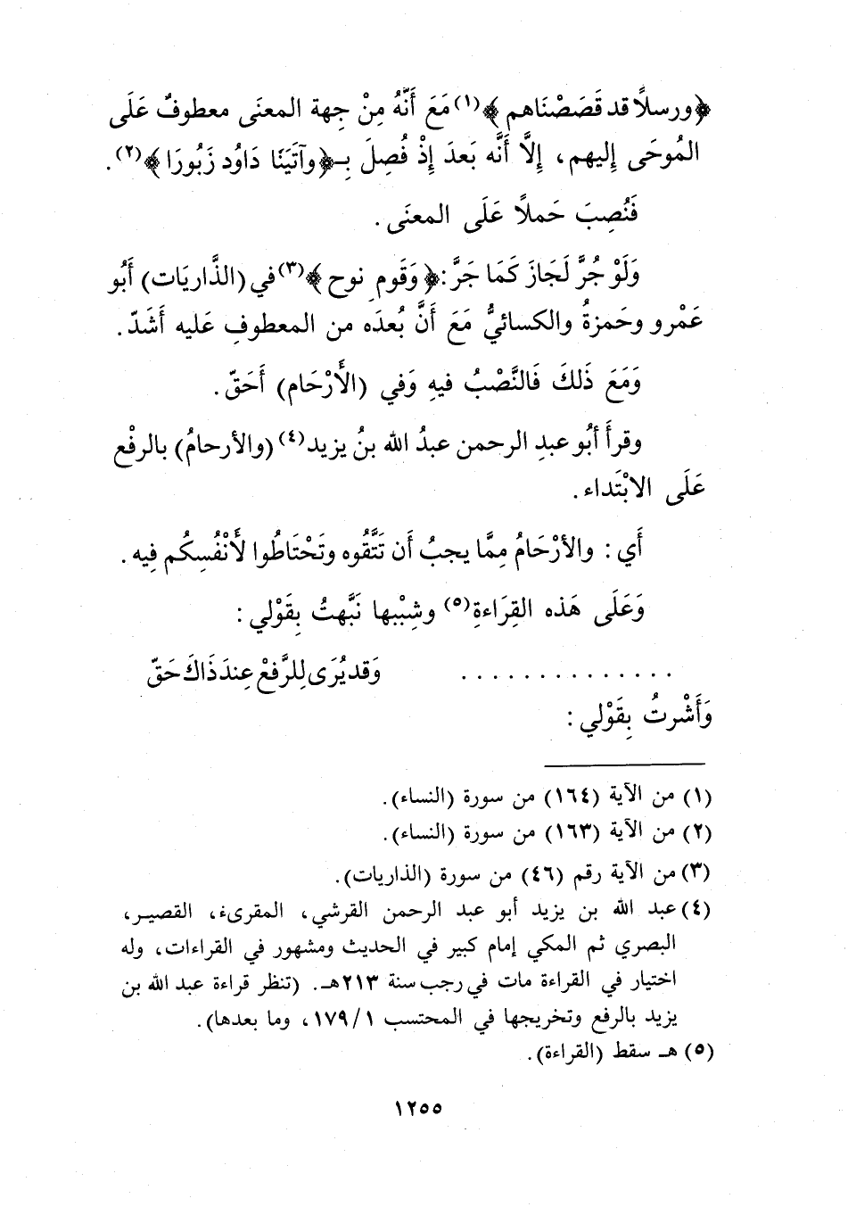 {وَرُسُلًا قَدْ قَصَصْنَاهُم} 1مع أنه من جهة المعنى معطوف على الموحي إليهم، إلا أنه بعد إذ فصل بـ {وَآتَيْنَا دَاوُدَ زَبُورًا} 2.