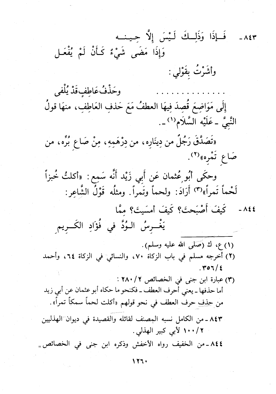 843- من الكامل نسبه المصنف لقائله، والقصيدة في ديوان الهذليين 2/ 100 لأبي كبير الهذلي.