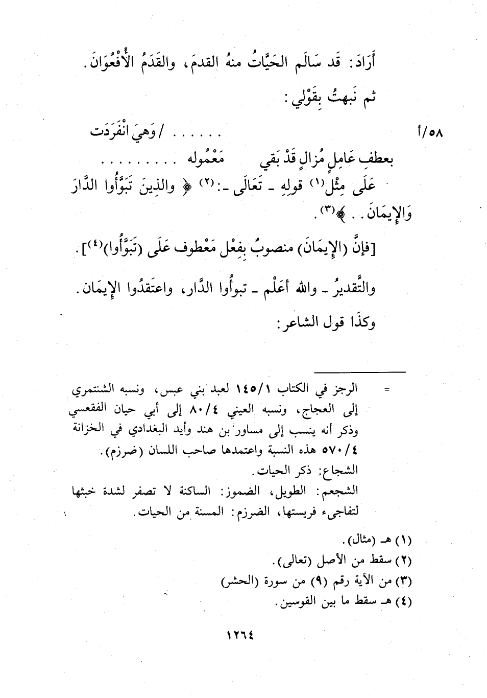 [فإن "الإيمان" منصوب فعل معطوف على "تبوأوا"4] .