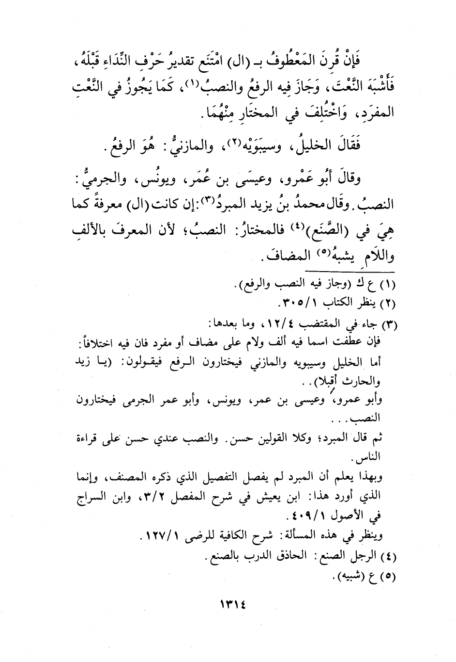 النصب وقال محمد بن زيد المبرد3: إن كانت "ال" معرفة كما هي ي "الصنع"4 فالمختار: النصب؛ لأن المعرف باألف والام يشبه5 المضاف.