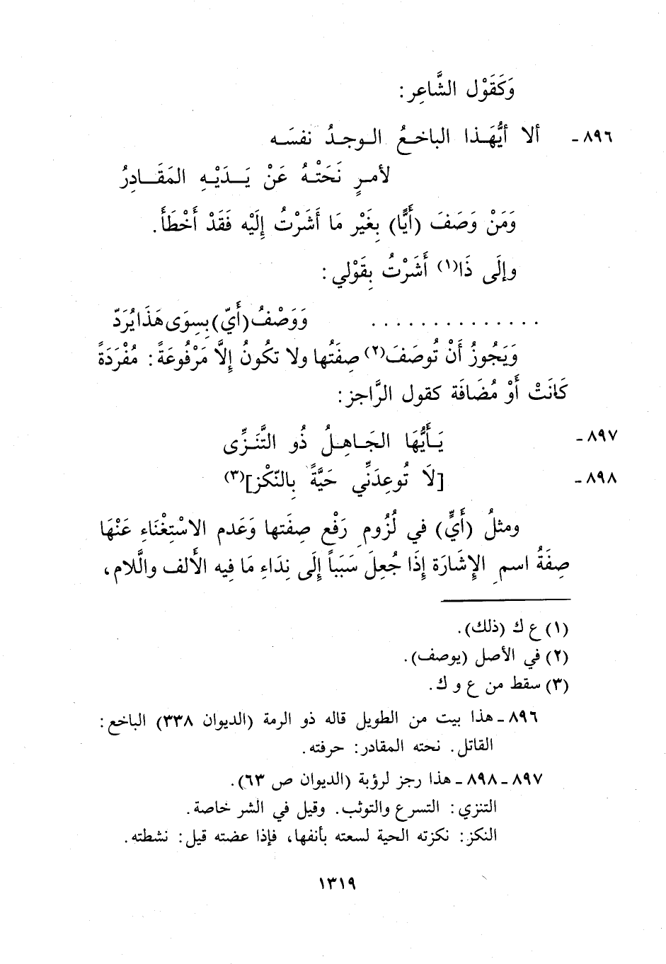 ومثل "أي" في لزوم رفع صفتها، وعدم الاستغناء عنها صفة اسم الإرشاة إذا جعل سببا إلى نداء ما فيه الألف واللام،