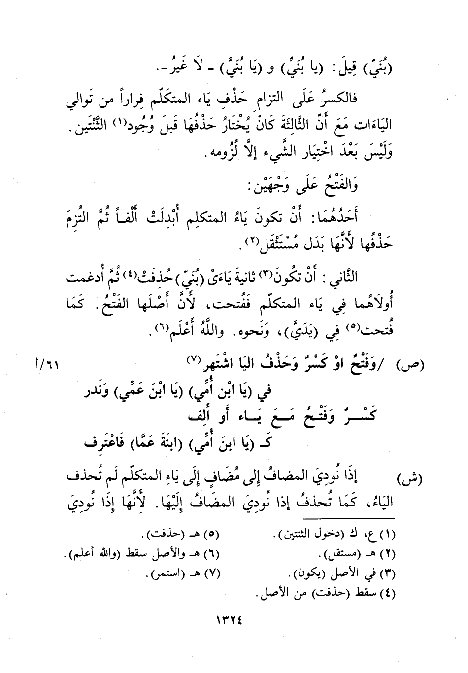 وفتح أو كسر وحذف اليا اشتهر7 ... في "يا ابن أمي" "يا ابن عمي" وندر