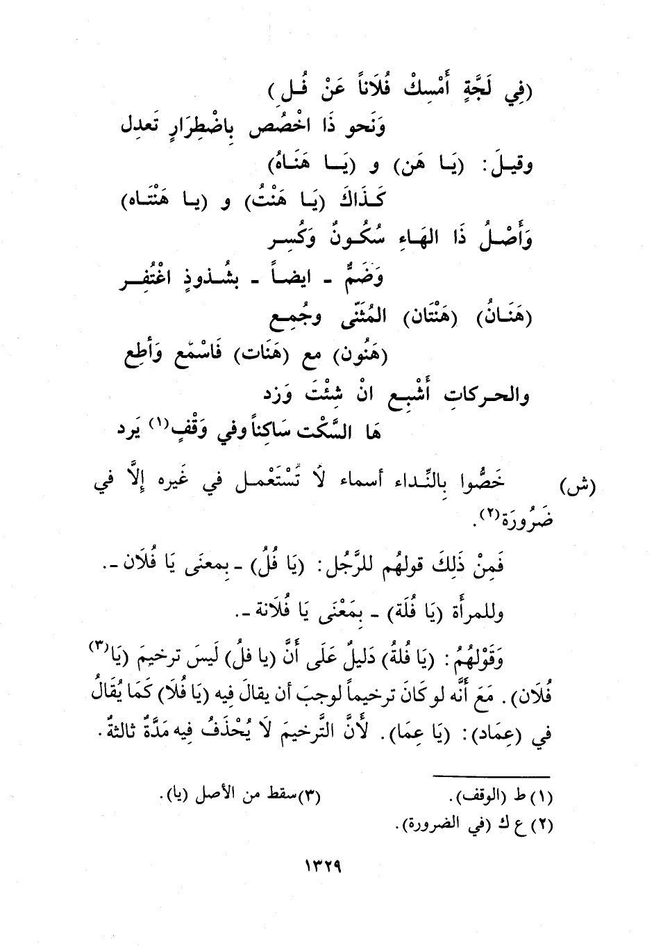 "ش" خصوا بالنداء أسماء لا تستعمل في غيره إلا في ضرورة2.