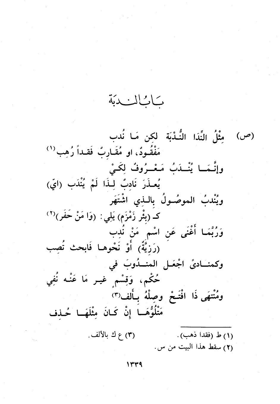 مثل الندا الندبة لكن ما ندب ... مفقود، أو مقارب فقدا رهب1