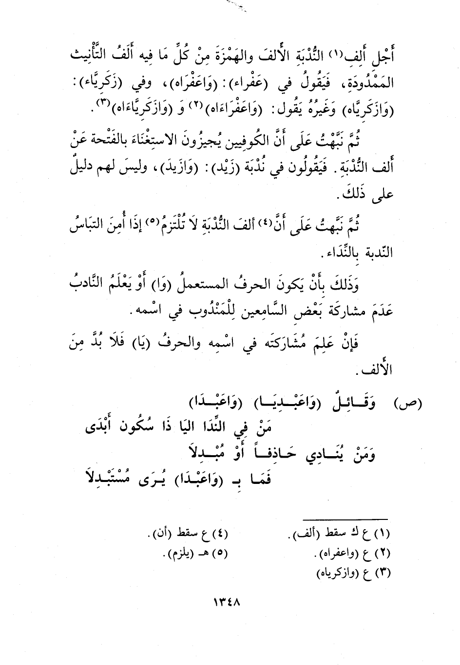 أجل ألف1 الندبة الألف والهمزمة من كل ما فيه ألف التأنيث الممدودة، فيقول في "عفراء": "واعفراه"، وفي "زكرياء": "وازكرياه"، وغيره يقول: "واعفراءاه"2، و"وازكرياءاه"3.
