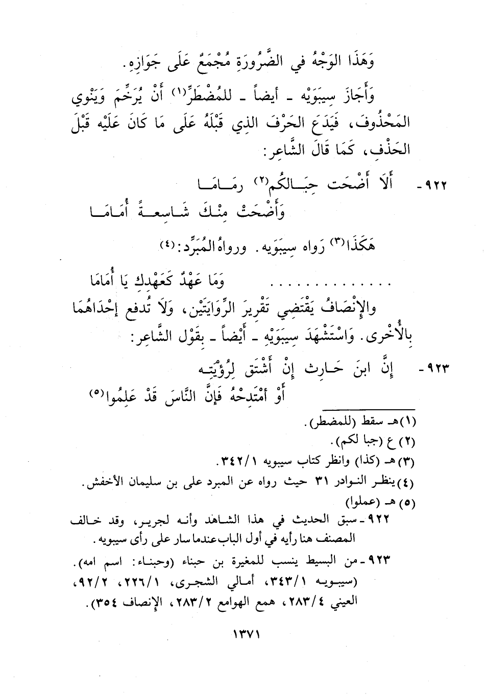 923- من البسيط ينسب للمغيرة بن حبناء "وحبناء: اسم أمه". "سيبويه 1/ 343، أمالي الشجري، 1/ 226، 2/ 92، العيني 4/ 283، همع الهوامع 2/ 283، الإنصاف 354".