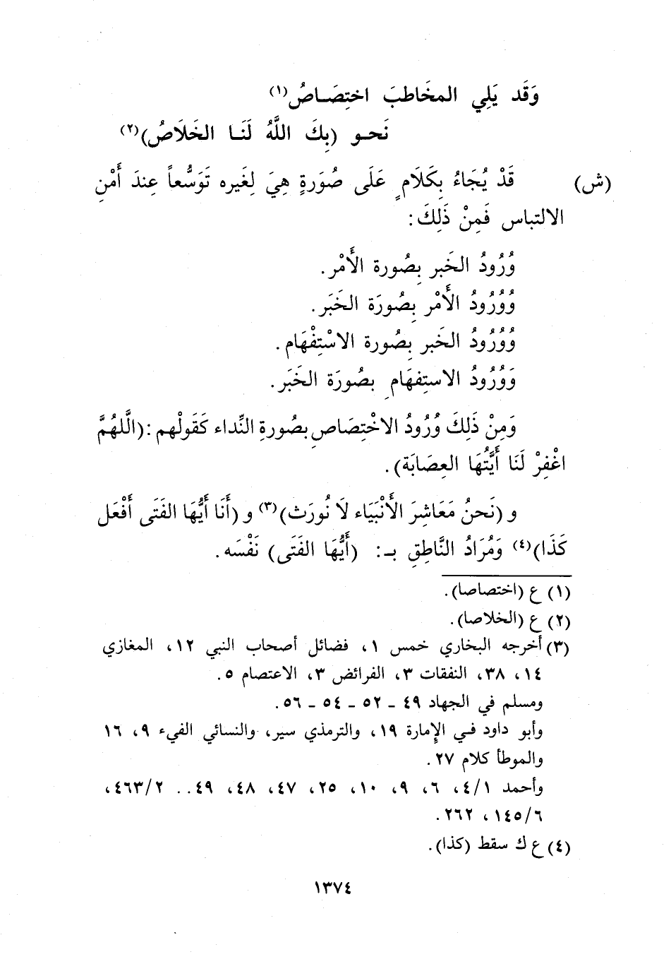 و"نحن معاشر الأنبياء لا نورث" 3 و"أنا أيها الفتى أفعل كذا"4 ومراد الناطق بـ: "أيها الفتى" نفسه.