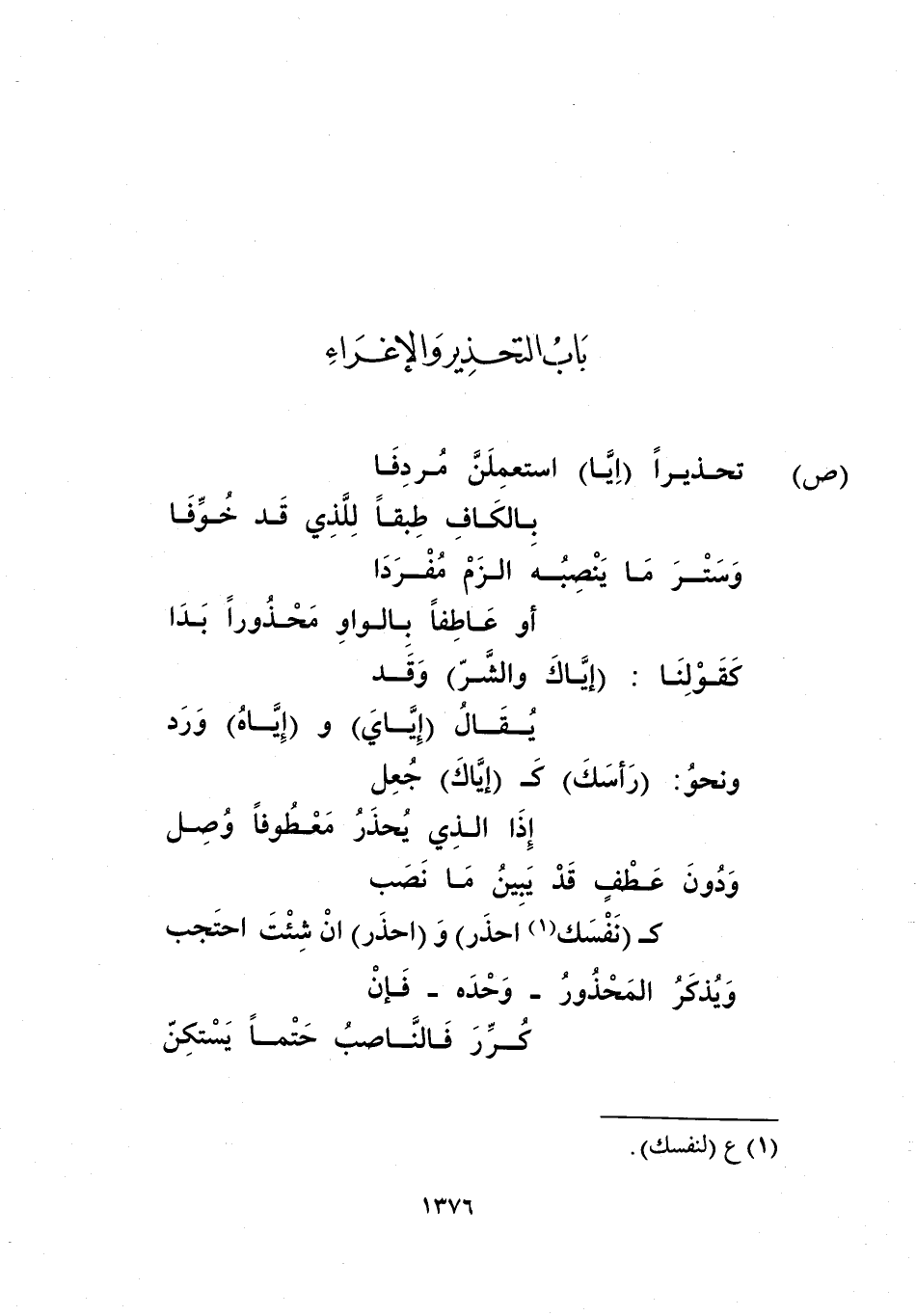 تحذيرا "إيا" استعملن مردفا ... بالكاف طبقا للذي قد خوفا