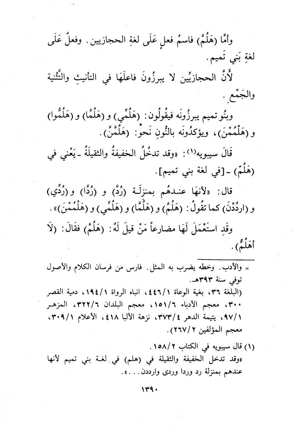 "وقال تدخل الخفيفة، والثقيلة في "هلم" في لغة بني تميم؛ لأنها عندهم بمنزلة رد وردا وردي وارددن ... ".