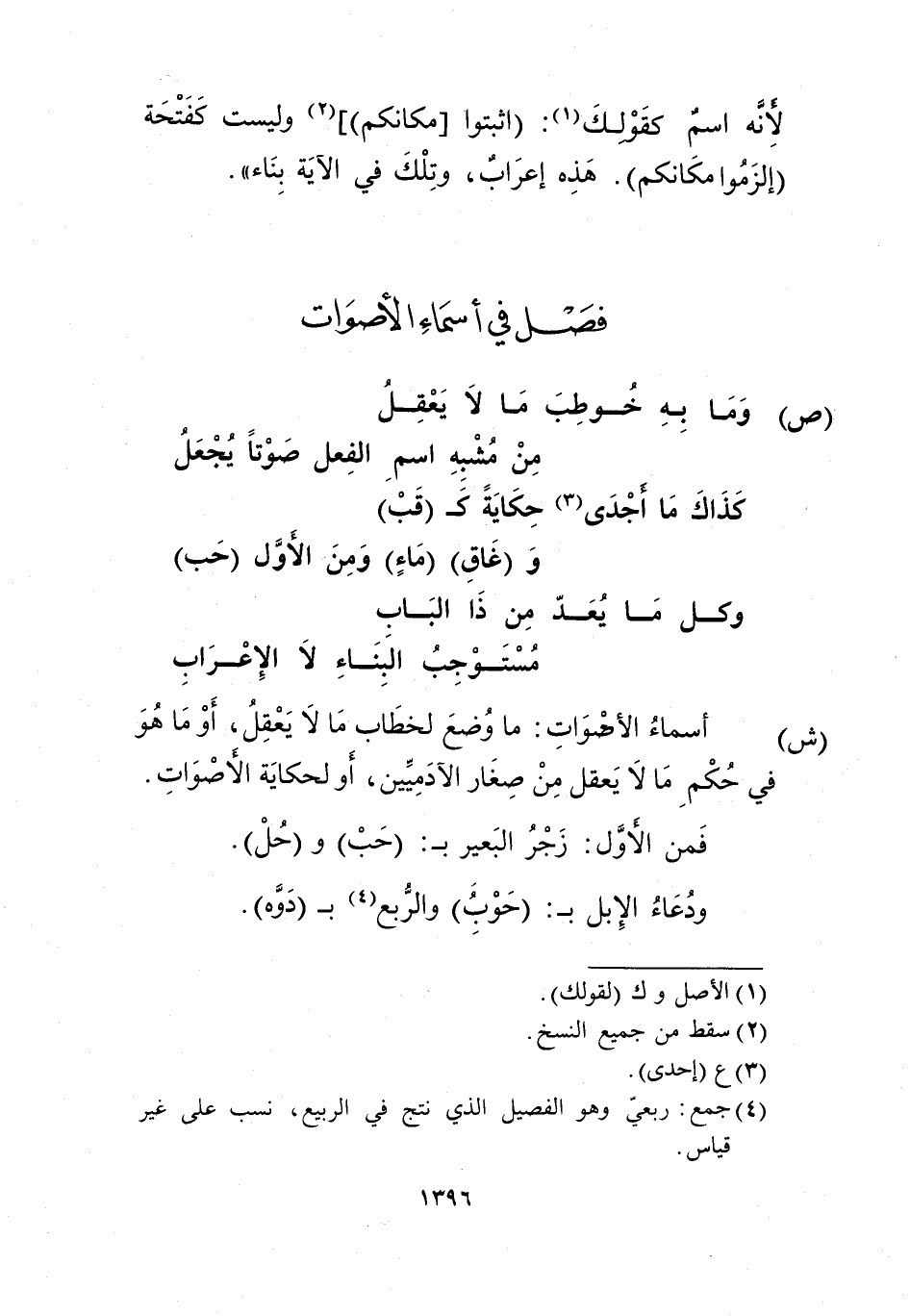كذاك ما أجدى3 حكاية كـ"قب" ... و"غاق" "ماء" ومن الأول "حب"