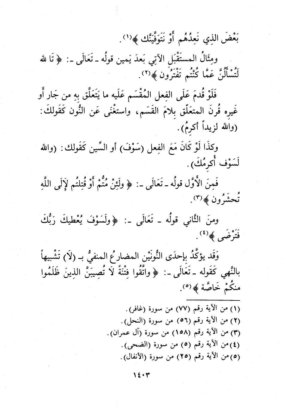 ومثال المستقبل الآتي بعد يمين قوله تعالى: {تَاللَّهِ لَتُسْأَلُنَّ عَمَّا كُنْتُمْ تَفْتَرُونَ} 2.