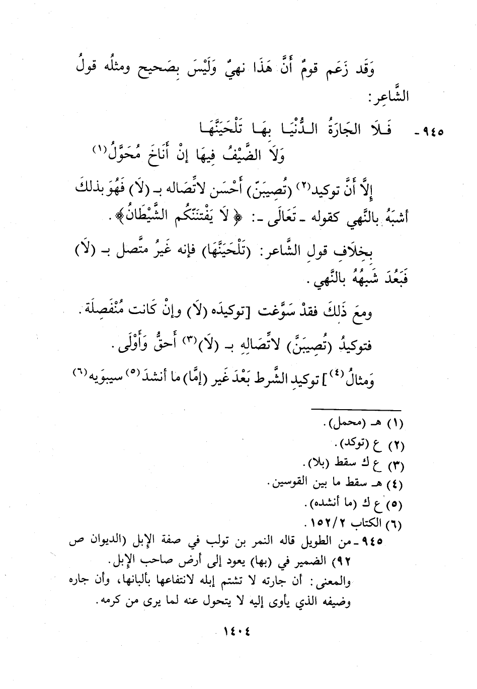 بخلاف قول الشاعر: "تلحينها"، فإنه غير متصل بـ"لا" فبعد شبهه بالنهي.