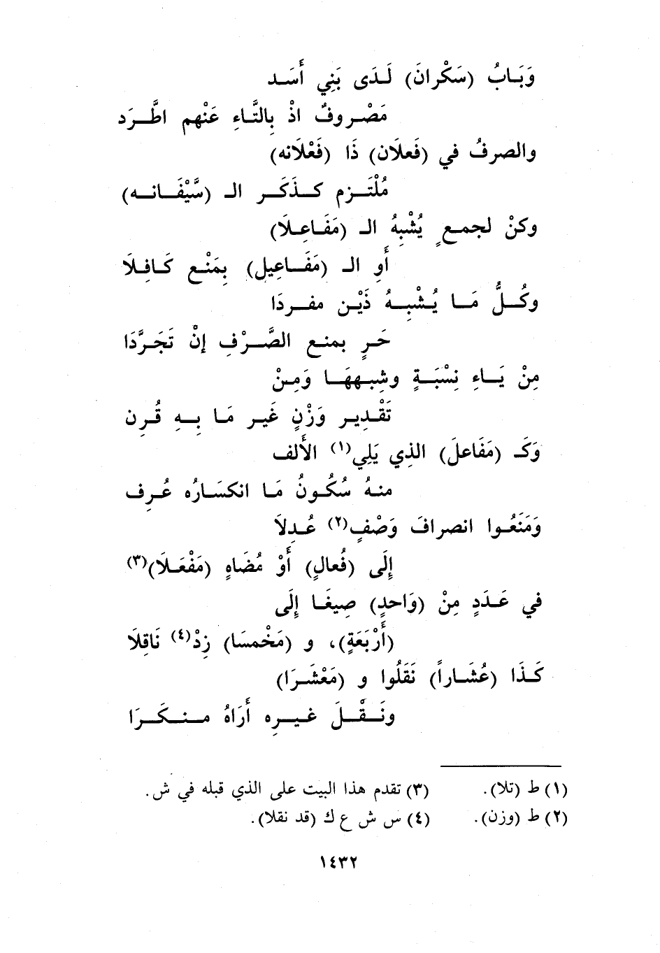 وباب "سكران" لدى بني أسد ... مصروف إذ بالتاء عنهم اطرد