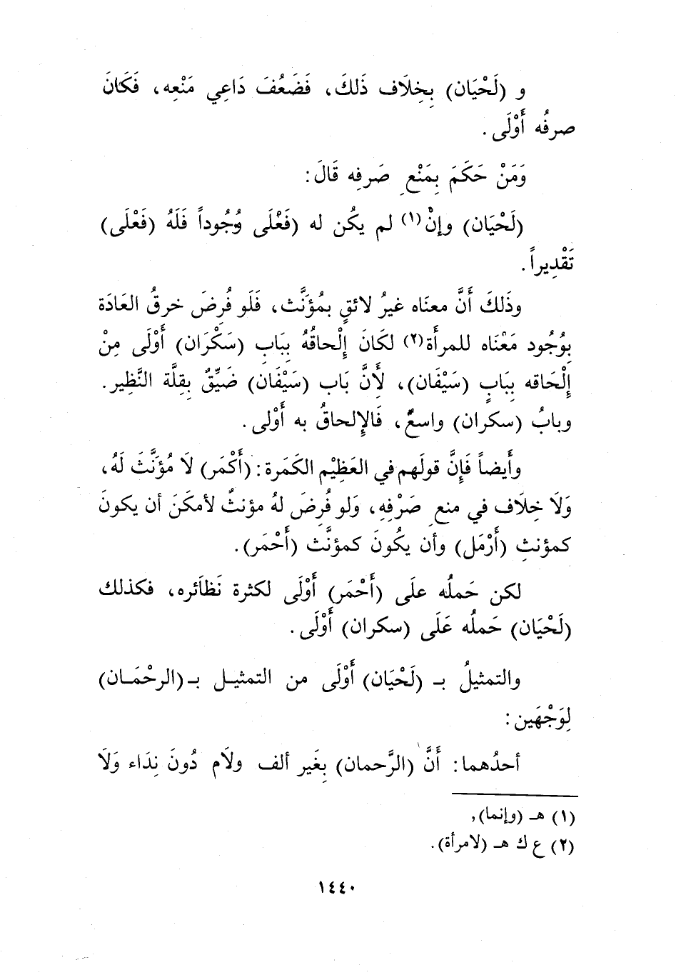 لكن حمله على "أحمر" أولى لكثرة نظائره، فكذلك "لحيان" حمله على "سكران" أولى.