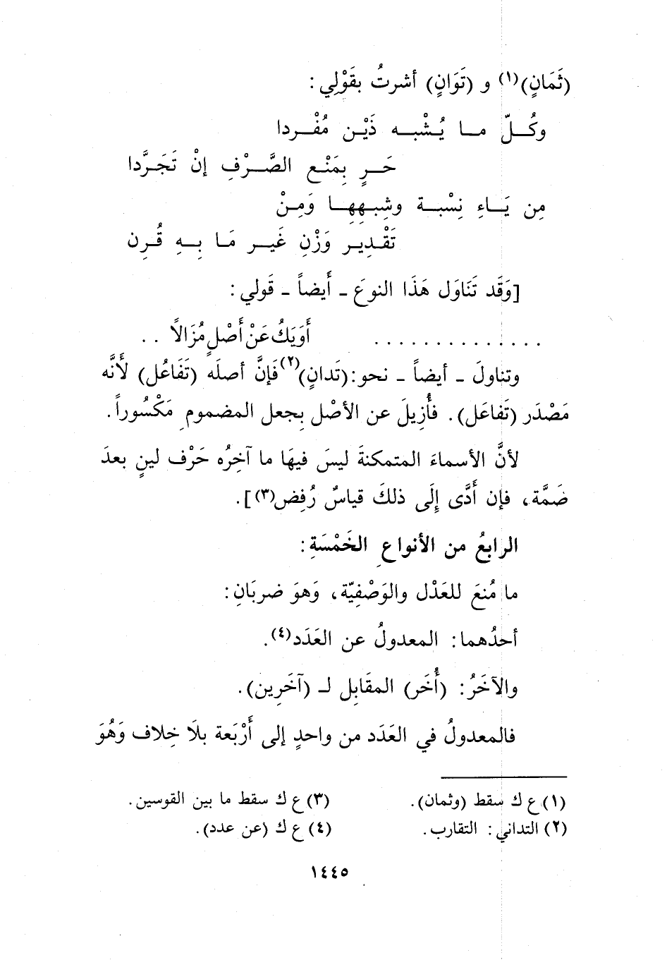 من ياء نسبة وشبهها ومن ... تقدير وزن غير ما به قرن