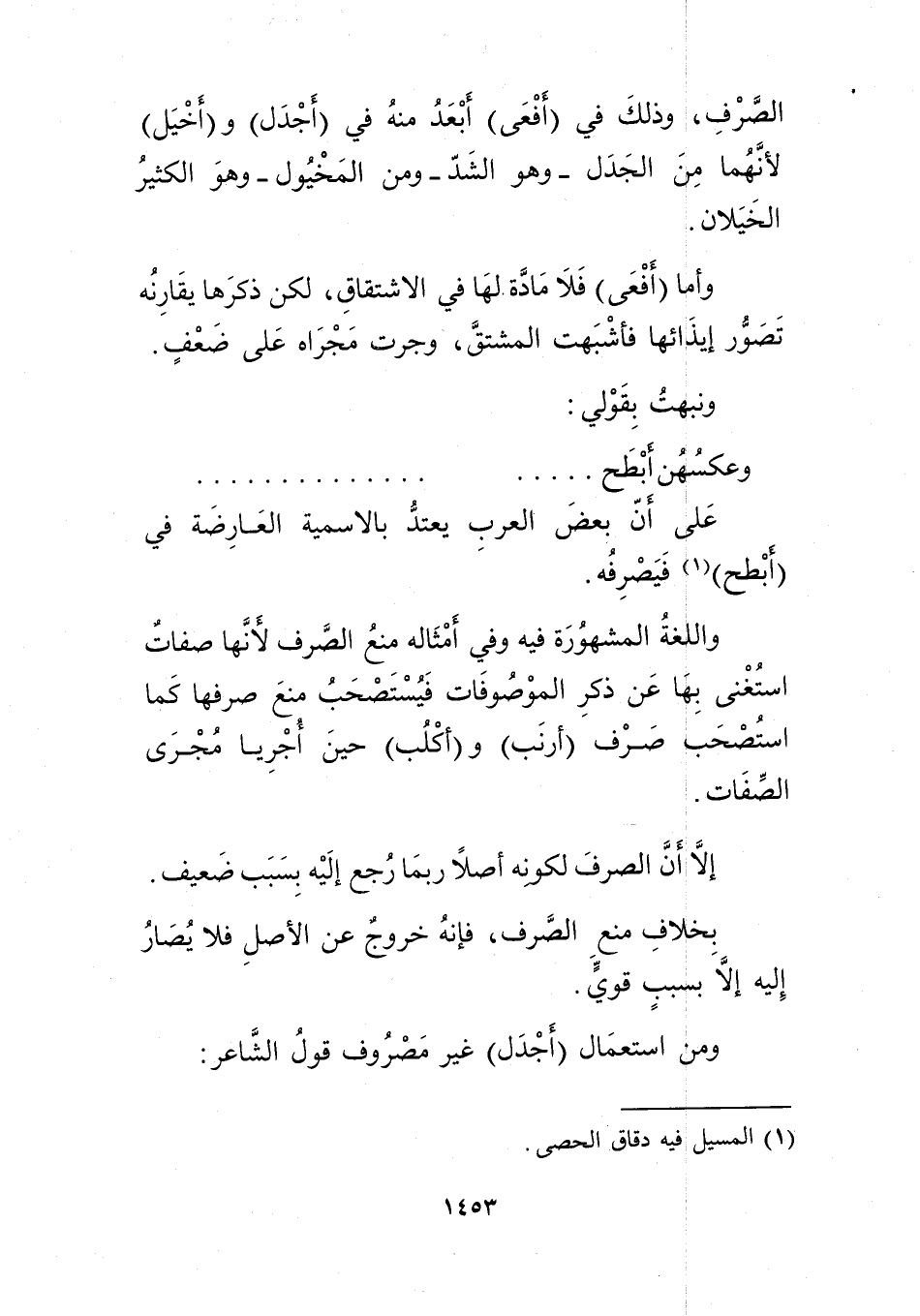 الصرف، وذلك في "أفعى" أبعد منه في "أجدل" و"أخبل"؛ ولأنهما من الجدل -وهو الشد- ومن المخيول -وهو الكثير الخيلان.