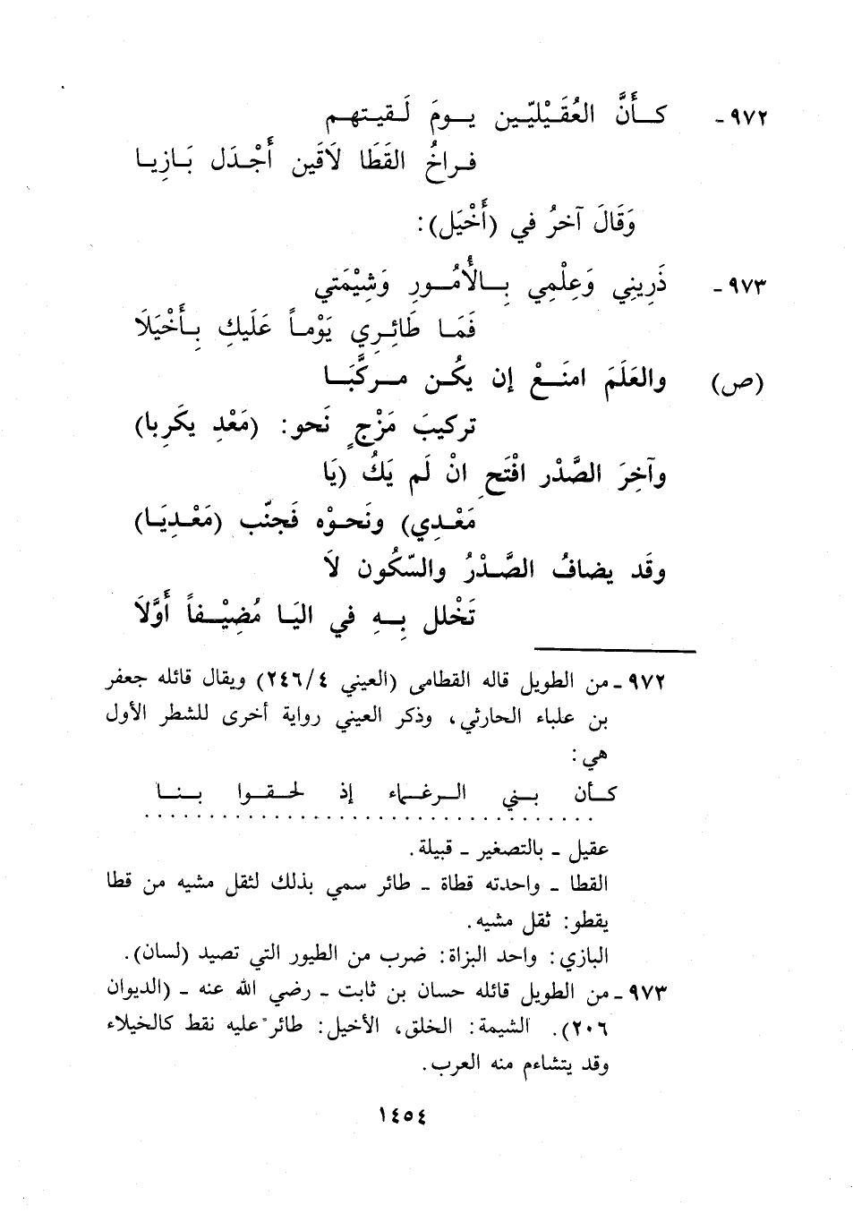 973- من الطويل قائله حسان بن ثابت -رضي الله عنه- "الديوان 206" الشيمة: الخلق، الأخيل: طائر عليه نقط كالخيلاء، وقد يتشاءم منه العرب.