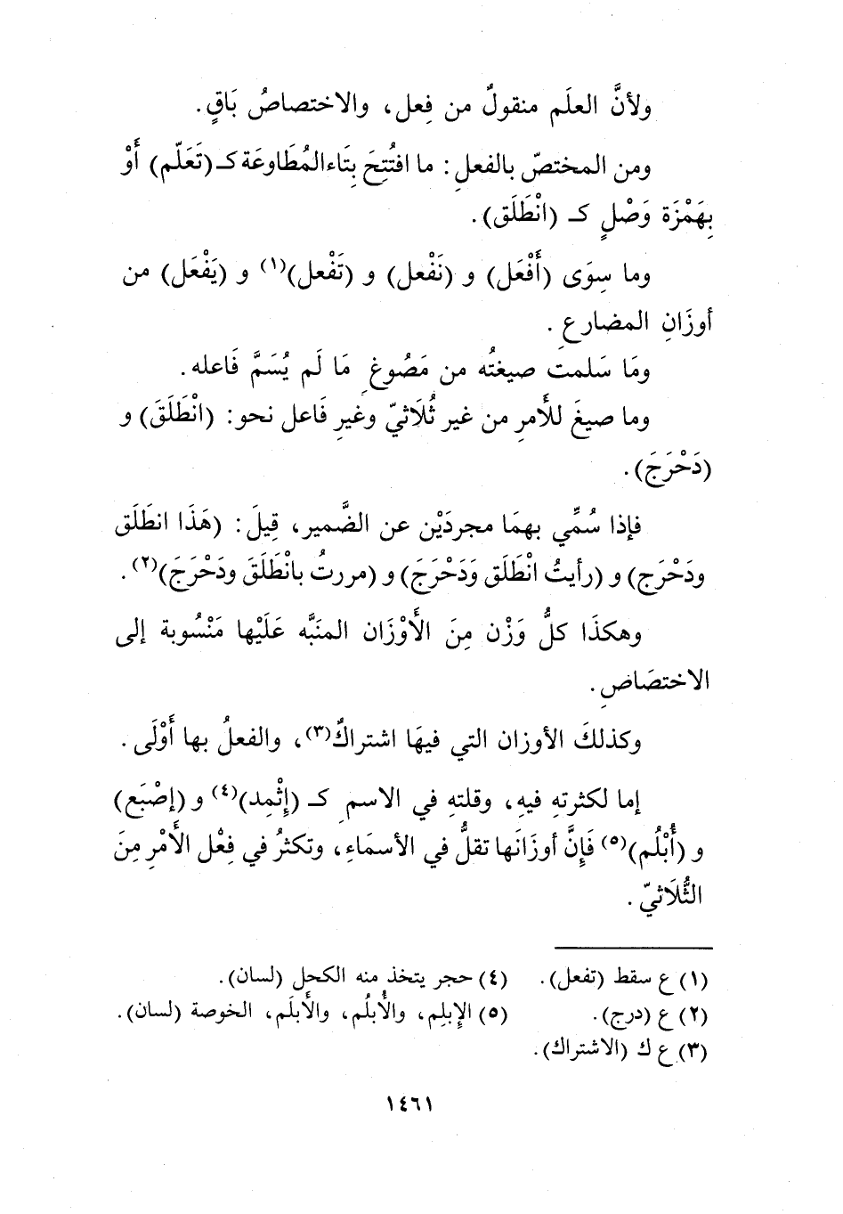إما لكثرته فيه، وقلته في الاسم كـ"إثمد"4، و"إصبع" وإبلم"5، فإن أوزانها تقل في الأسماء، وتكثر في فعل الأمر من الثلاثي.