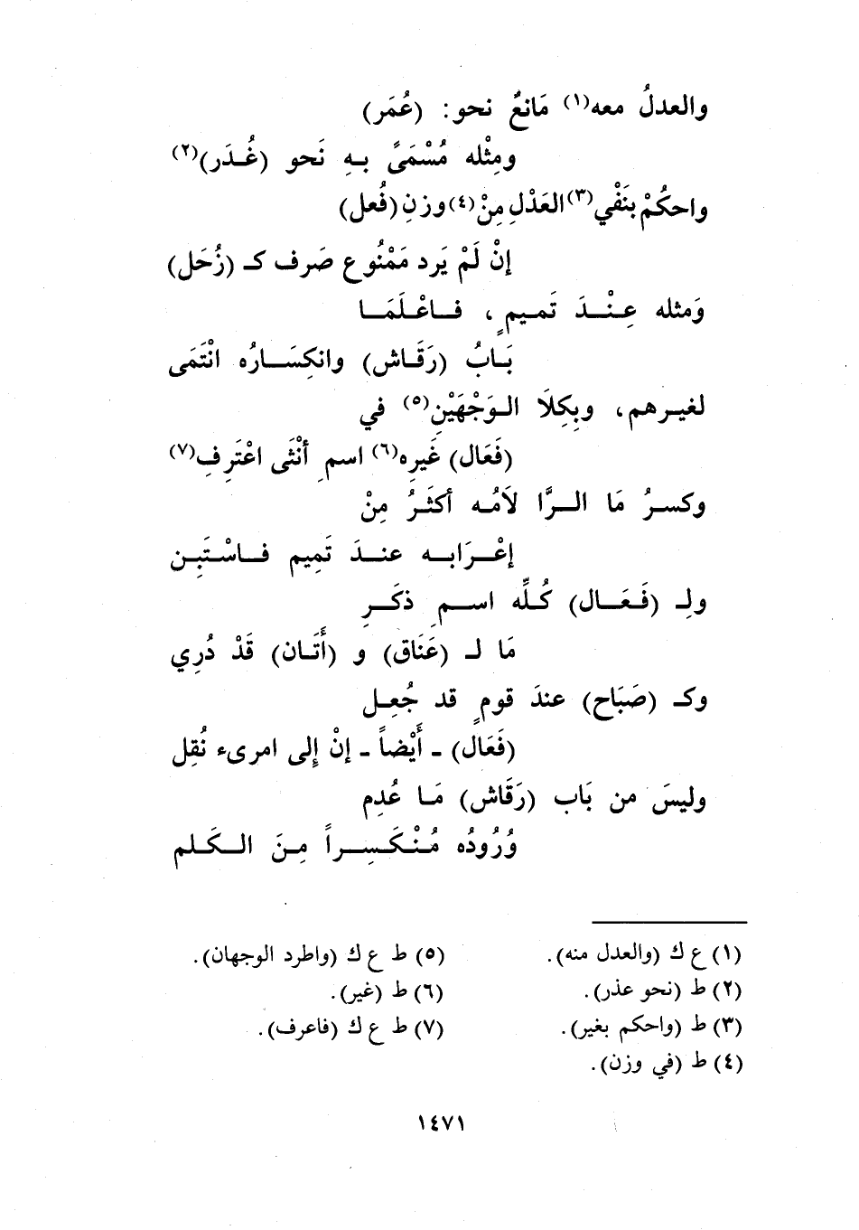 واحكم بنفي3 العدل من4 وزن "فعل" ... إن لم يرد ممنوع صرف كـ"زحل"