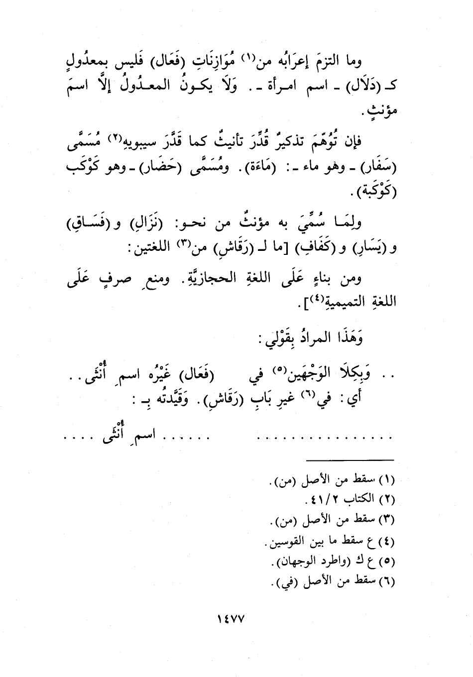 فإن توهم تذكير قدر تأنيث كما قدر سيبويه2 مسمى "سفار" -وهو ماء: "ماء". ومسمى "حضار" -وهو كوكب "كوكبة".