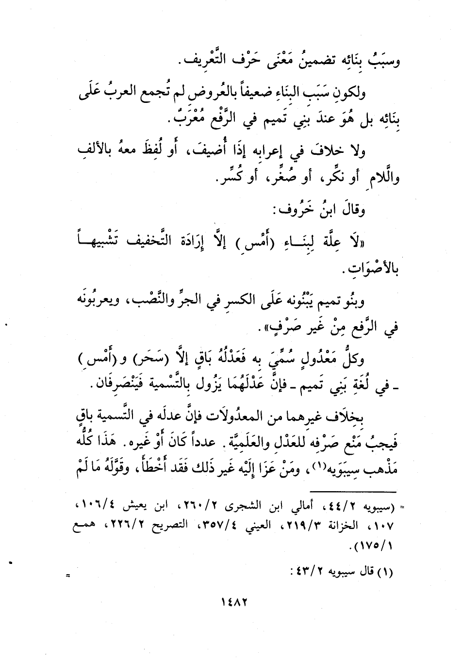 "لا علة لبناء "أمس" إلا إرادة التخفيف تشبيها بالأصوات.
