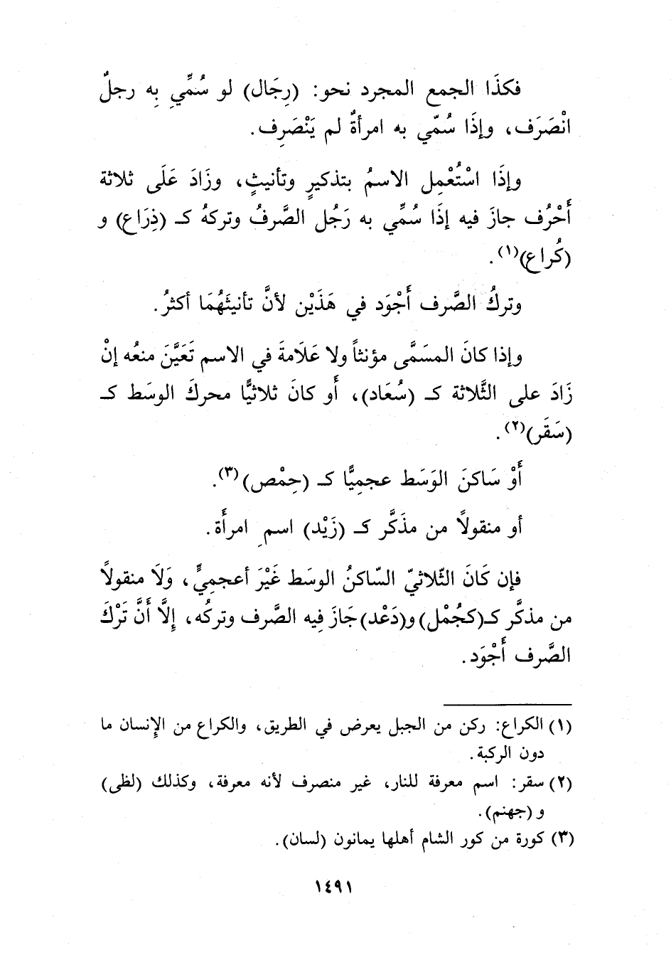 وإذا استعمل الاسم بتذكير وتأنيث، وزاد على ثلاثة أحراف جاز فيه إذا سمي به رجل الصرف، وتركه كـ"ذراع" و"كراع"1.