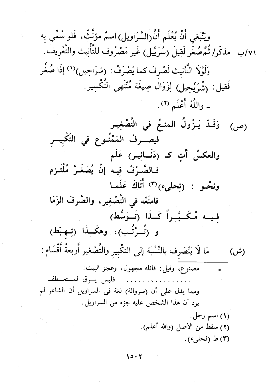 ولولات التأنيث لصرف كما يصرف: "شراحيل"1 إذا صغر فقيل: "شريحيل" لزوال صيغة منتهى التكسير.