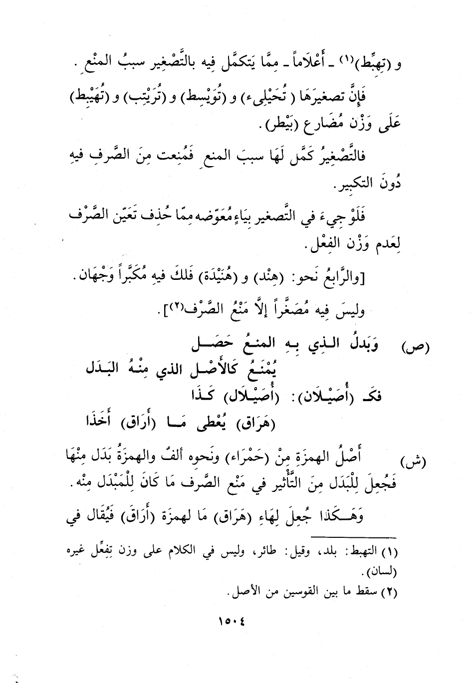 و"تهبط"1 -أعلاما- مما يتكمل فيه بالتصغير سبب المنع. فإن تصغيرها "تحيلئ" و"تويسط" و"تريتب" و"تهيبط" على وزن مضارع "بيطر".