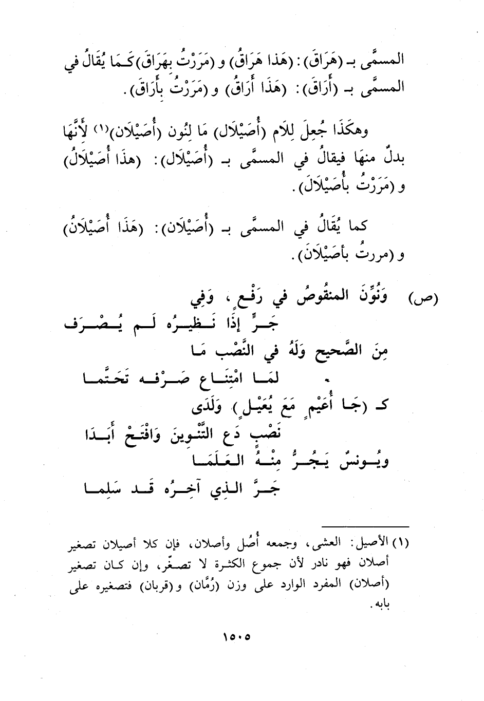وهكذا جعل للام "أصيلال" ما لنون "أصيلان"1؛ لأنها بدل منها فيقال في المسمى بـ"أصلال": "هذا أصيلال" و"مررت بأصيلال".