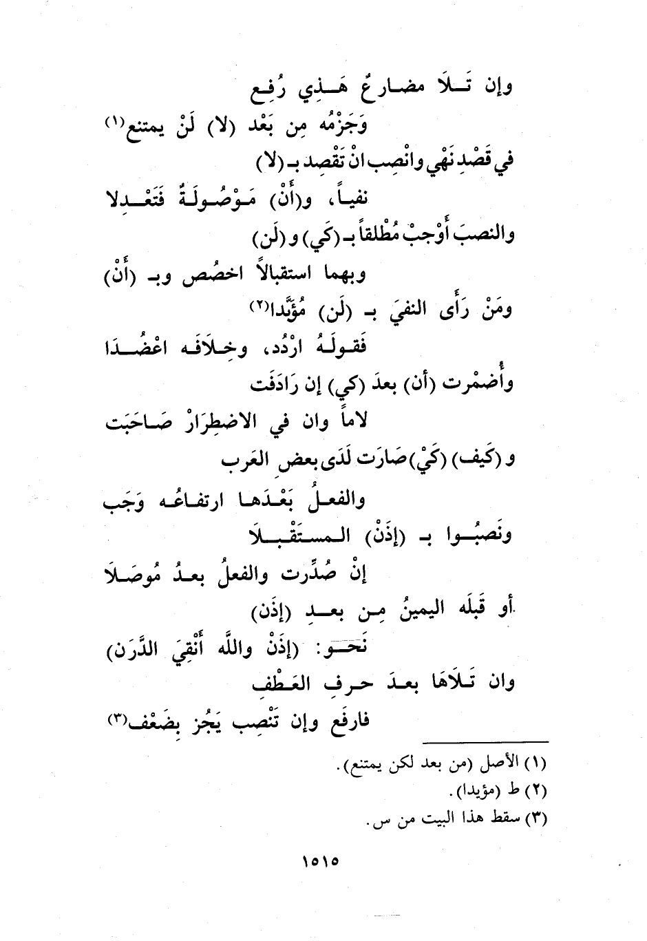 وإن تلا مضارع هذي رفع ... وجزمه من بعد "لا" لن "يمتنع"1