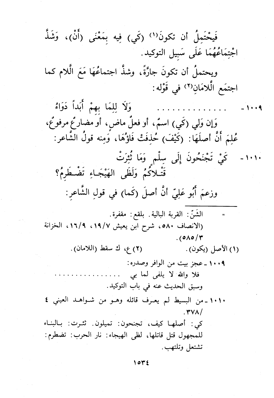 1010- من البسيط لم يعرف قائله، وهو من شواهد العيني 4/ 378.